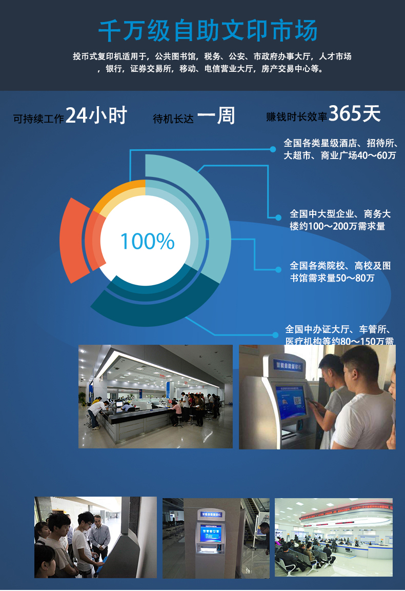 自助復(fù)印機市場前景:共享智能復(fù)印系統(tǒng)在校園打印設(shè)備上有足夠的驚艷,它的使用操作方法簡單,支付方式多樣,能為廣大師生提供一個便捷的復(fù)印打印平臺。廣州浩田自助終端系統(tǒng)聯(lián)系電話:400-030-2780
