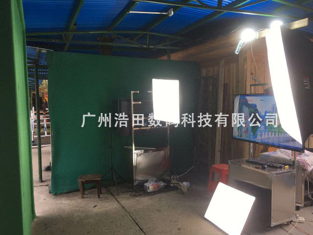 1.人站在自助拍照機前方,界面顯示背景和人像,做好合適的POSE