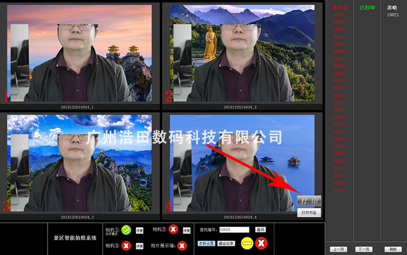 3. 虛擬旅游拍照系統占地面積小,場地面積7—8平米,1—2人就可以經營,客戶可切換不同的背景模板,生成新的照片。
